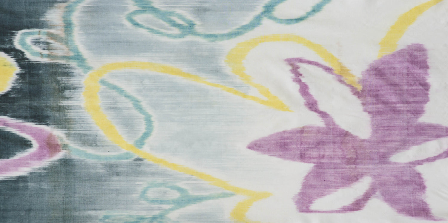 The 2018 collection elevates the sapuan technique—sapuan meaning “to paint” in Malay—where designs are painted onto pulled warp yarns before colors are brushed on, fixed, and finally attached to the loom for weaving. A painstaking process, it yields richly textured, one-of-a-kind shawls that are both labor-intensive and deeply rewarding.