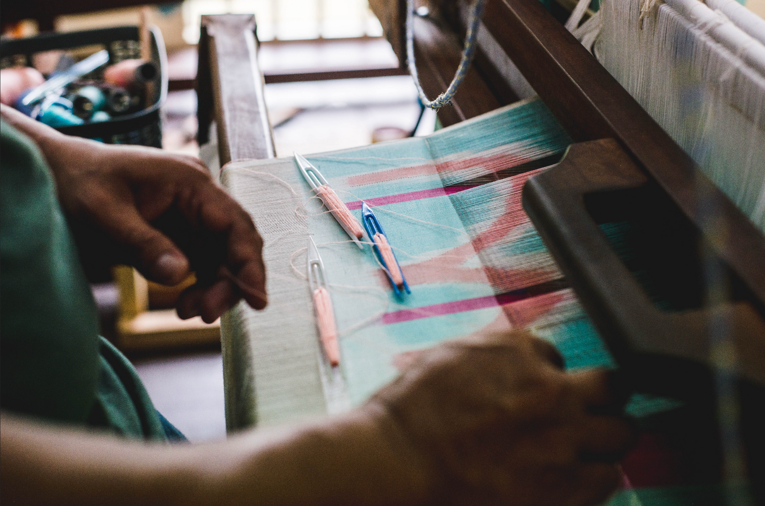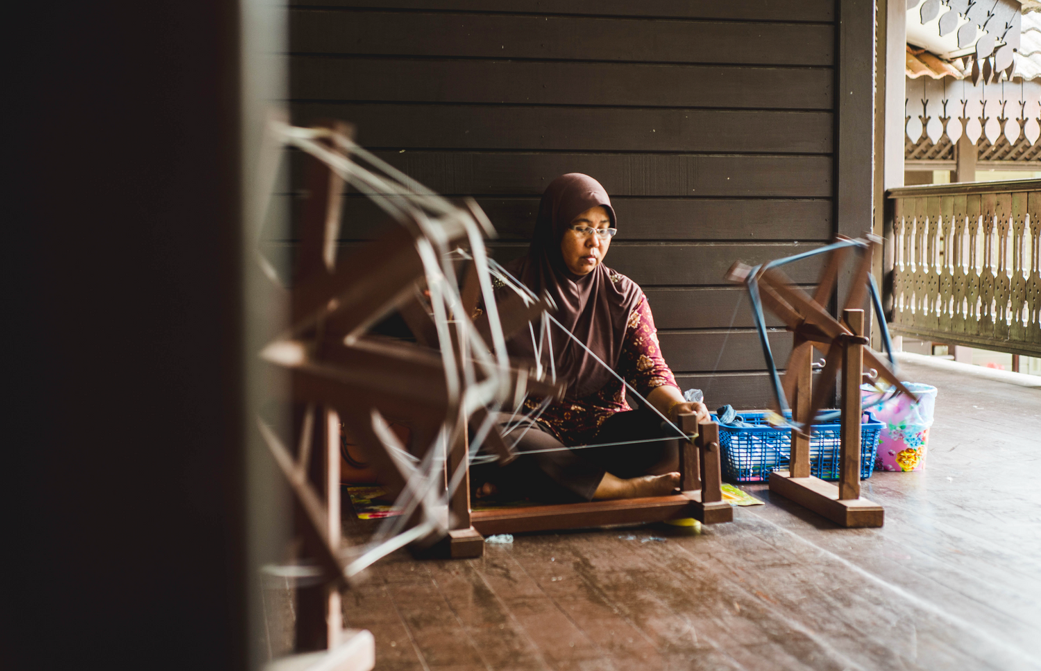 Songtik IV, Tenun Reimagined is a collection of 8 shawls, designed by Marina Ibrahim and handwoven using the Royal Pahang Weave silk techniques by Cheminahsayang. The abstract designs showcase Marina Ibrahim’s signature strokes, exploring the movements of nature on land and water.