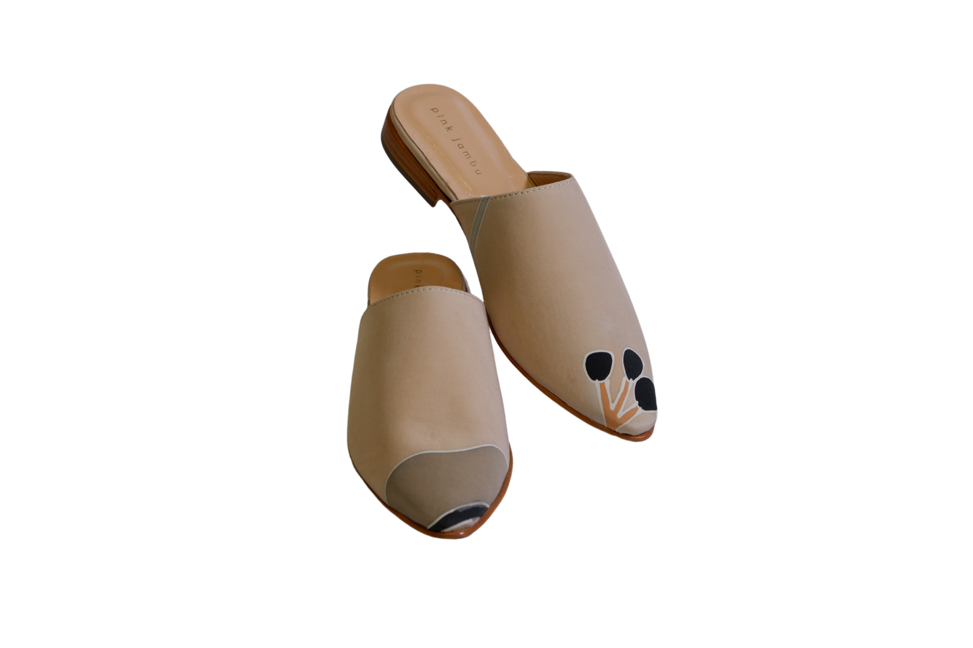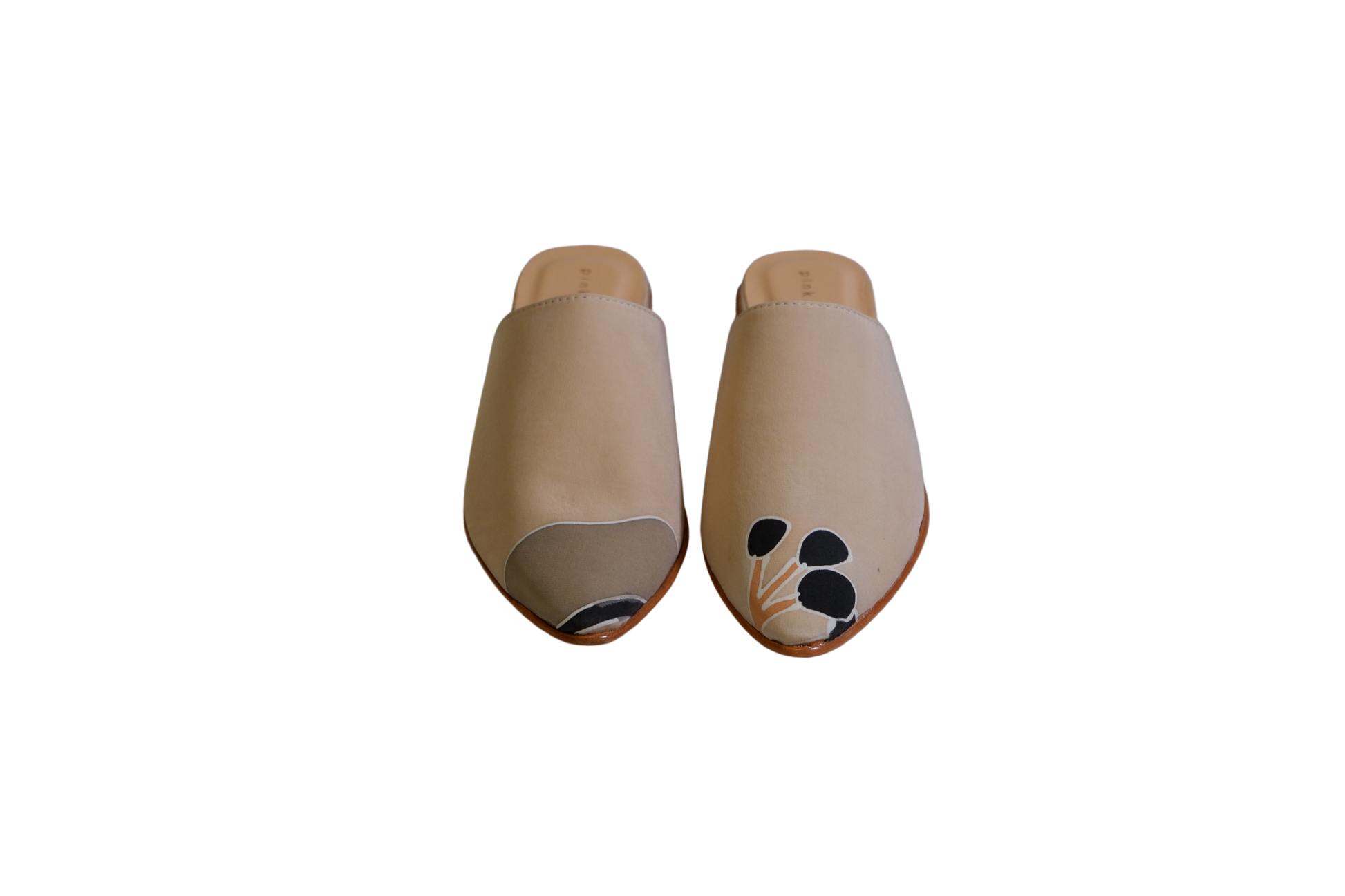These Alhambra Mules have been handcrafted in Turkey from genuine leather and covered in hand-painted Pink Jambu pure silk batik. This Alhambra Mules is a high round slip-on with pointed toe. Every design is limited. For half sizes, purchase the upper size.