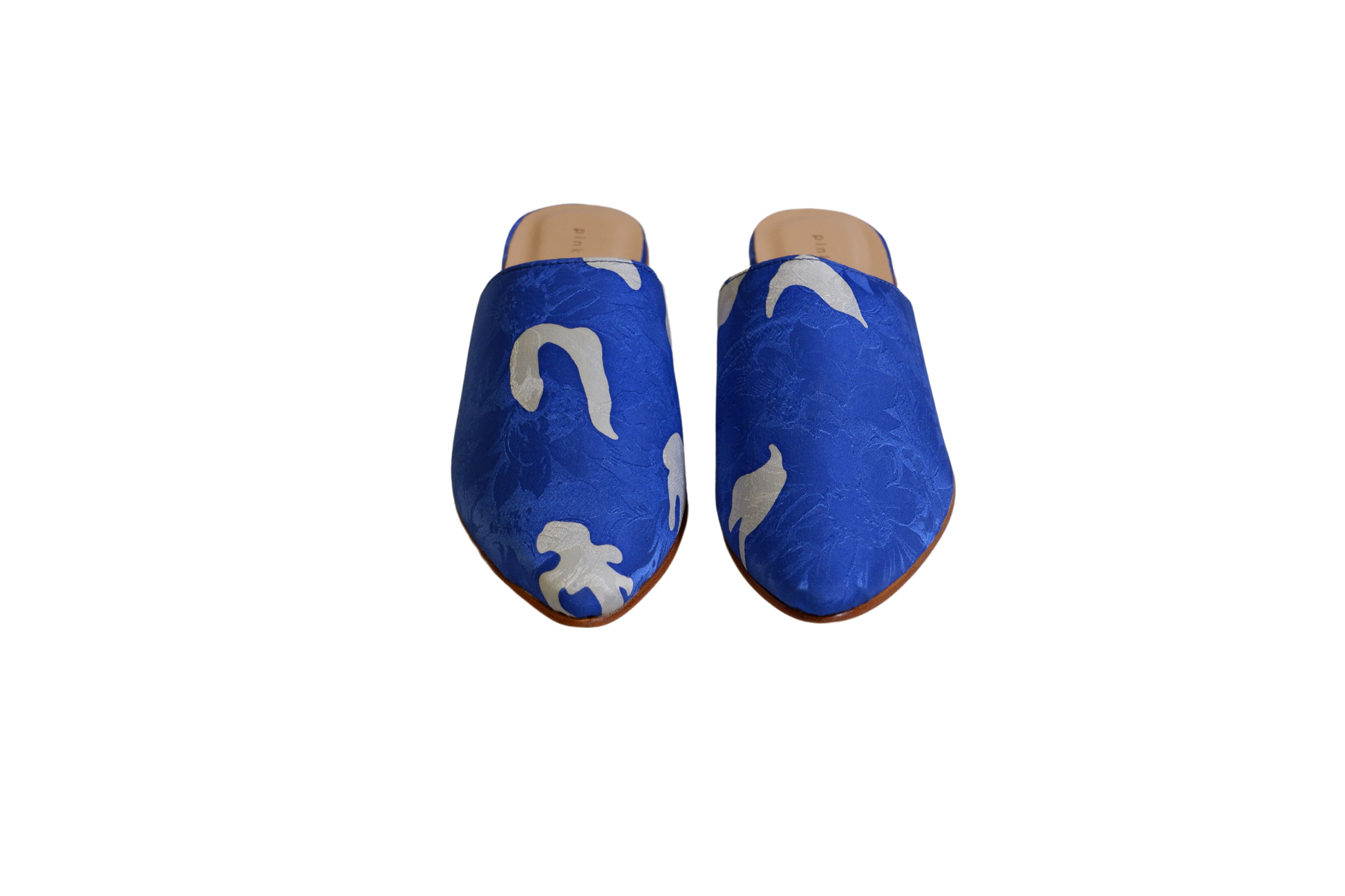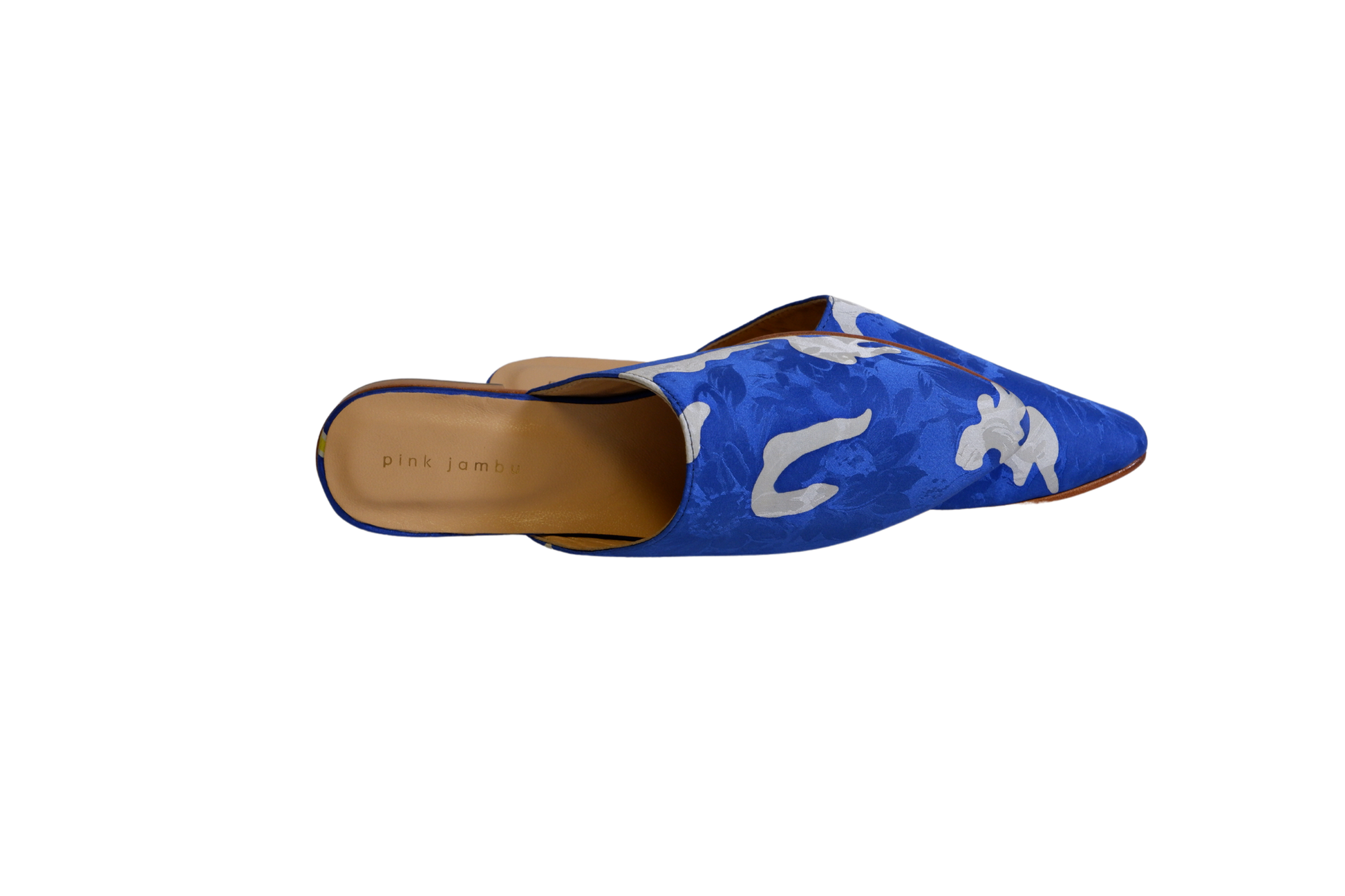 These Alhambra Mules have been handcrafted in Turkey from genuine leather and covered in hand-painted Pink Jambu pure silk batik. This Alhambra Mules is a high round slip-on with pointed toe. Every design is limited. For half sizes, purchase the upper size.