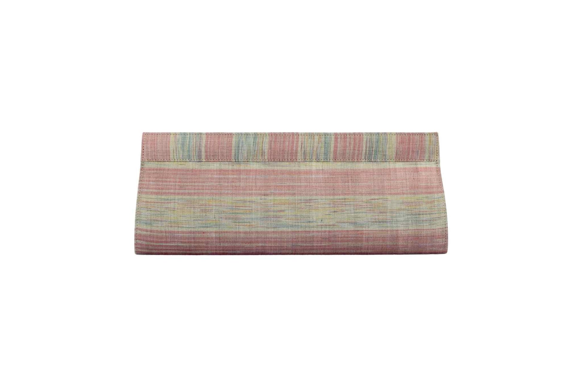 Horizontal stripes Cannoli clutch in red and mixed colours with Nibong Ikat pattern.
