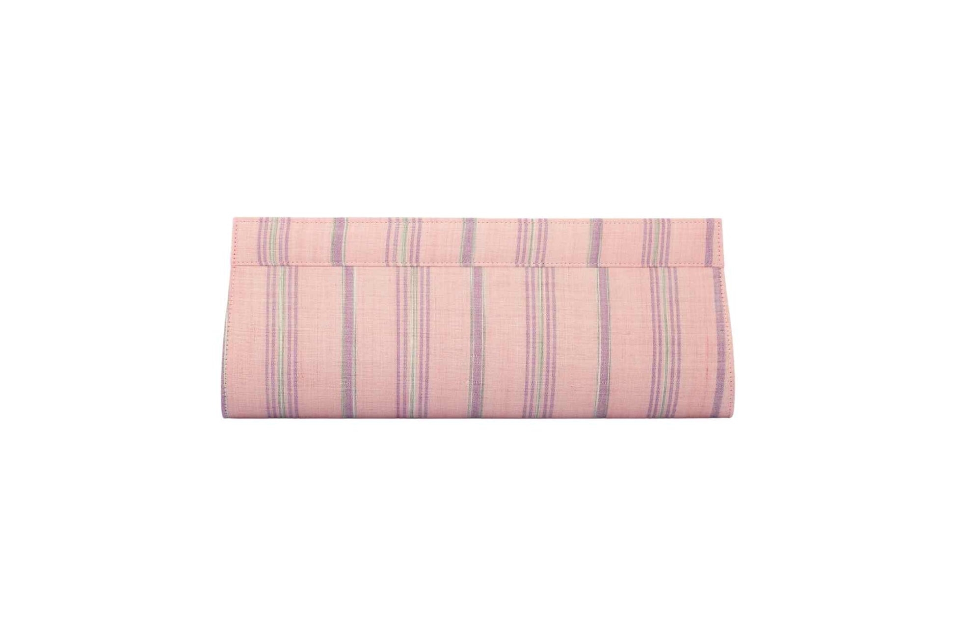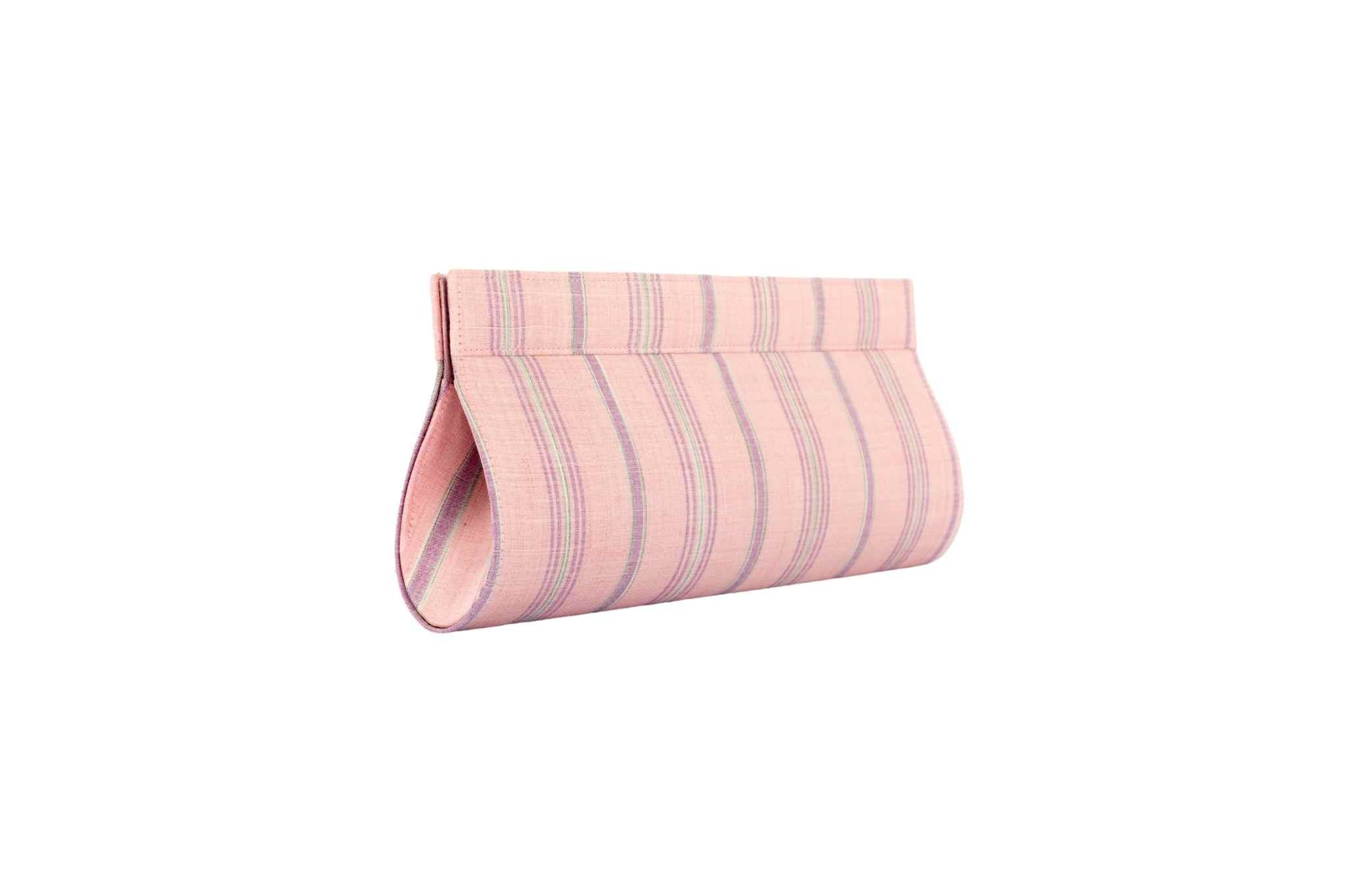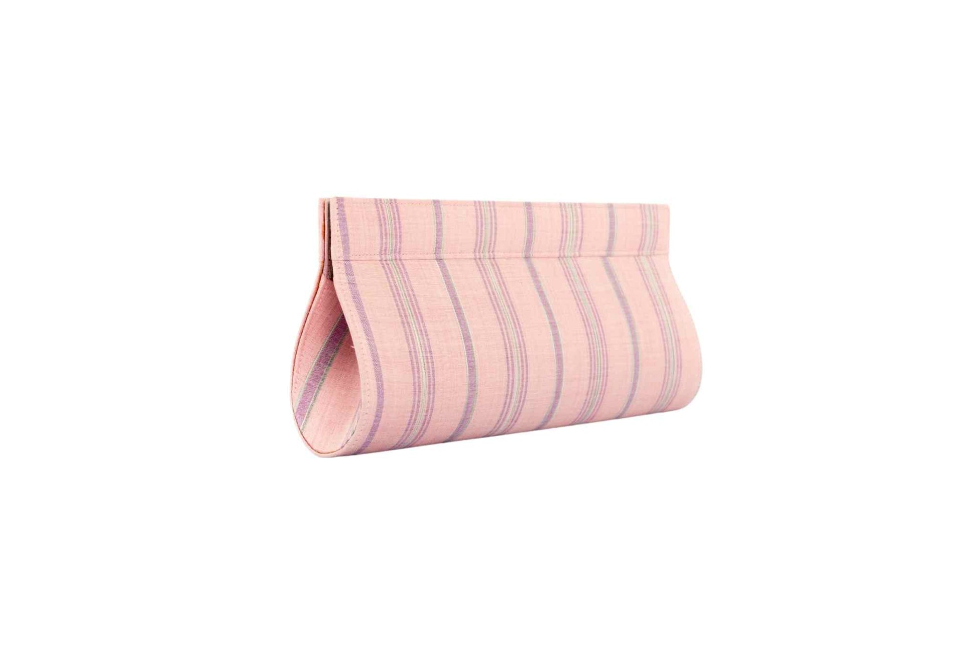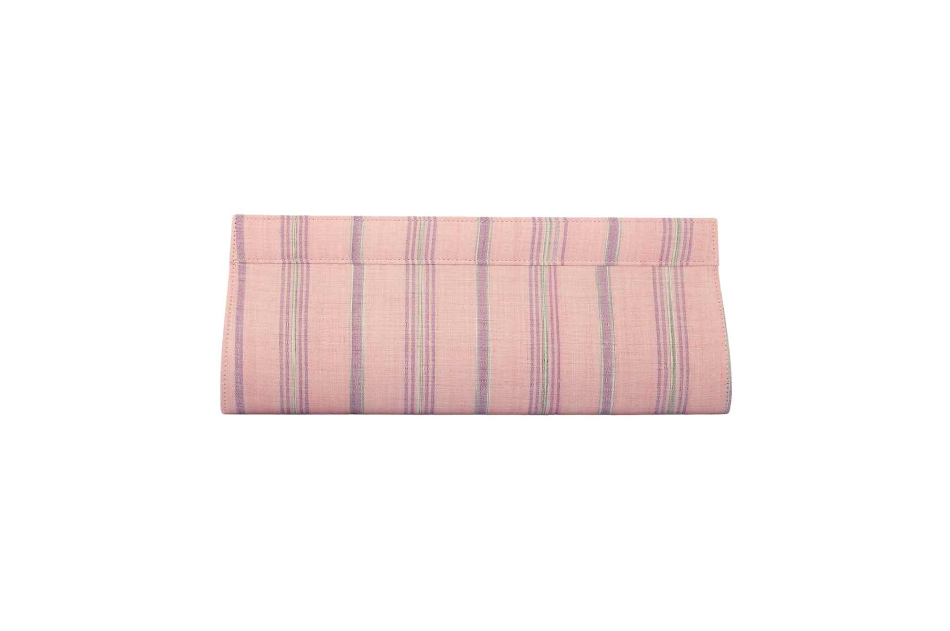 Vertical stripes Cannoli Clutch in baby pink, light purple, and light green colour.